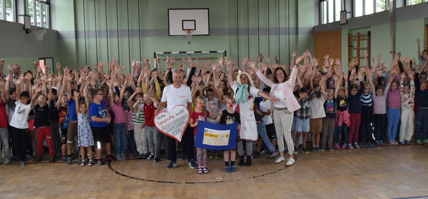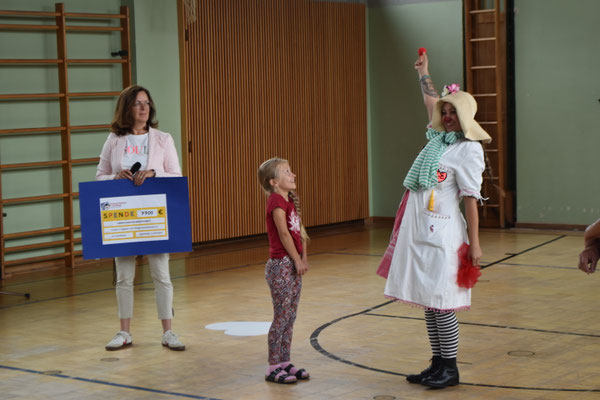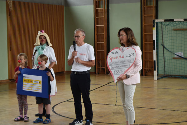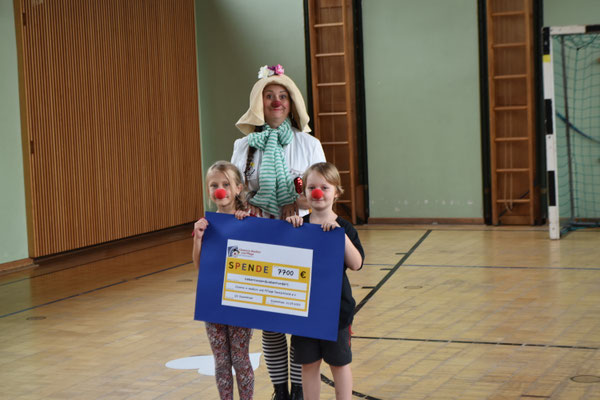 einen Spendenbetrag von insgesamt 8550,00€. Einen Teil spendete die Grundschule den Klinikclowns und ein weiterer Betrag ging an den Förderverein Krebskranker e.V. in Ingolstadt. Für die Übergabe