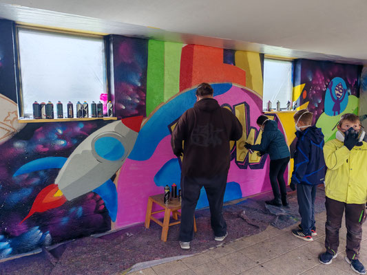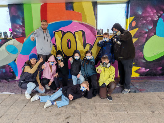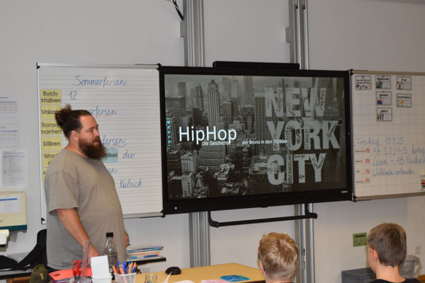 dieser Kunstrichtung, wie Hip-Hop, Breakdance und Beatboxing durch den Künstler informiert und durch einen Vortrag auf diese Lebensart eingestimmt worden. Bei der Umsetzung durften