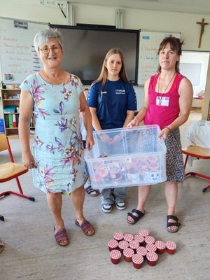 befüllt worden. Die Tonne hatten die Kinder zuvor im Unterricht mit Annegret Rannertshauser kreativ gestaltet. Mittels eines Rollenspiels erklärten Kinder der dritten Jahrgangsstufe, welche