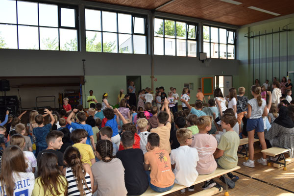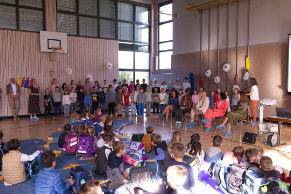 Für einen stimmungsvollen Auftakt sorgten die Kinder der Klassen 2a und 2b, die ihre neuen Mitschülerinnen und Mitschüler mit einem fröhlichen Lied empfingen. Ein besonderer Höhepunkt