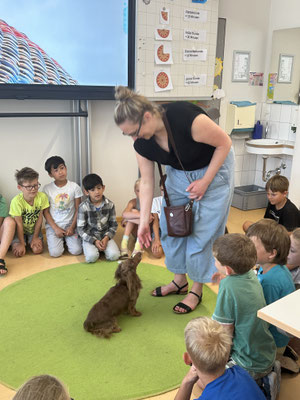 in den Heimat- und Sachunterricht. Der Dackel lernte den Kindern viel über Verhaltensweisen und die Körpersprache eines Hundes. Im Vorfeld hatte Frau Illing bereits die Körperteile